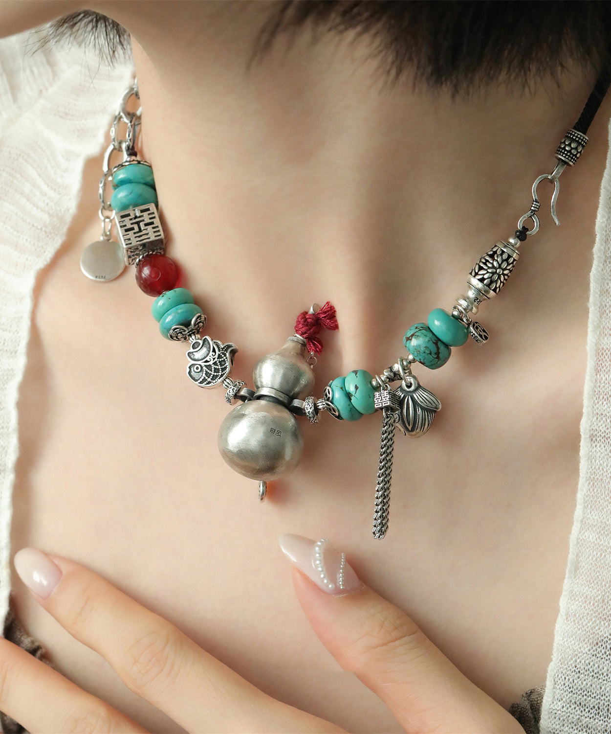 DIY Colorblock Sterling Silber Kalebassenachat Doppelglück Anhänger Halskette