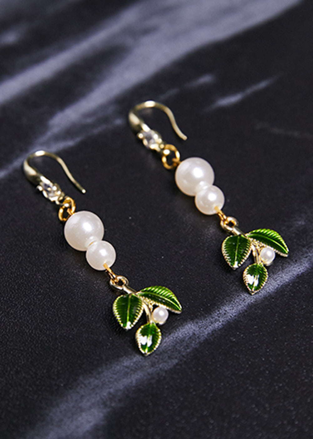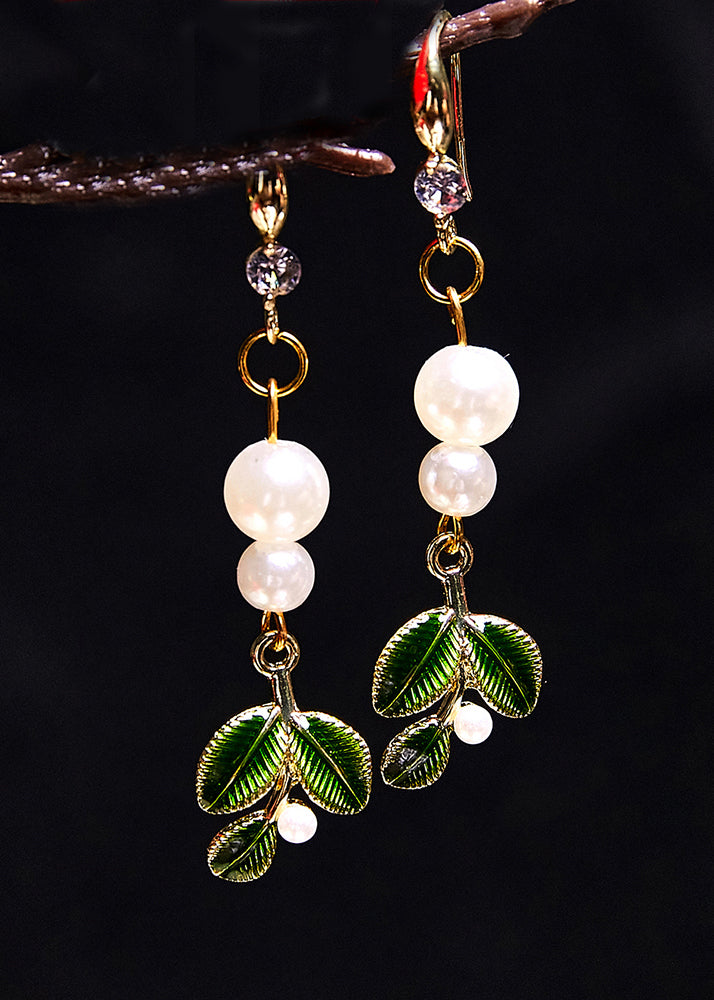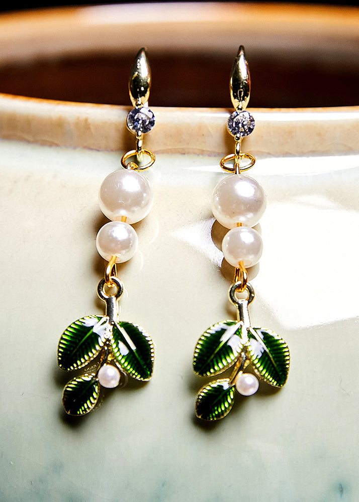 DIY Grüne Blatt Perle Zirkon Tropfen Ohrringe