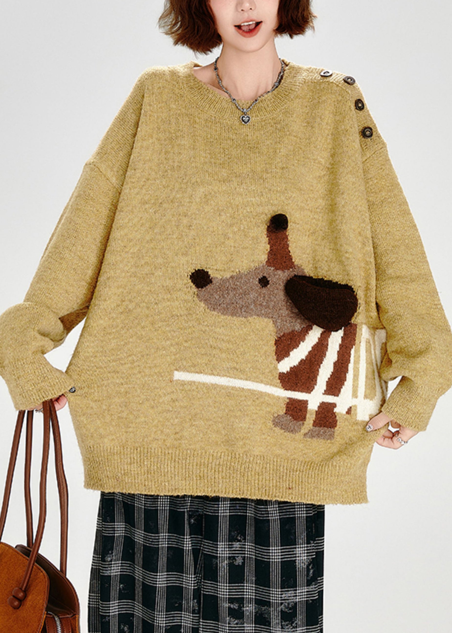 DIY Gelber asymmetrischer Hunde-Jacquard-Strickpullover, Winter