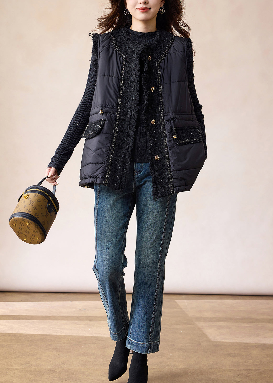 Elegante schwarze Patchwork-Westen aus feiner Baumwolle, gefüllt mit Baumwolle, Winter