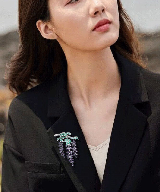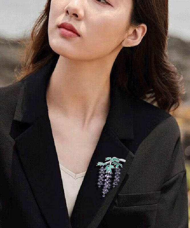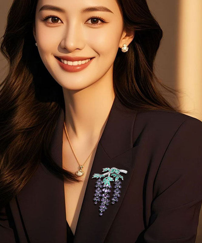 Elegante Broschen mit lila Kupfer-Zirkonia-Quaste und Glyzinienmotiv