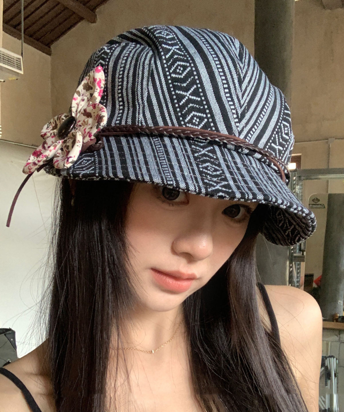 Fischerhut im Ethno-Stil mit Blumenmuster, Falten und Patchwork