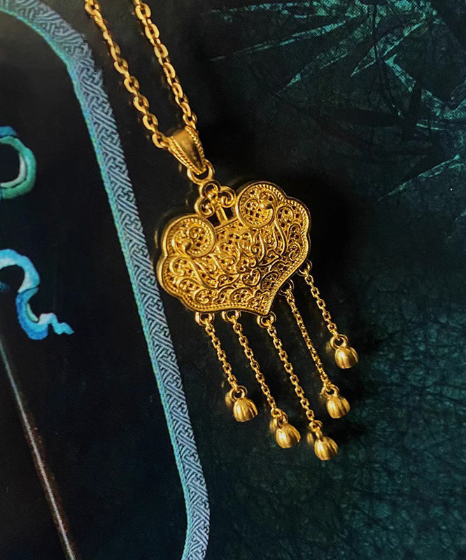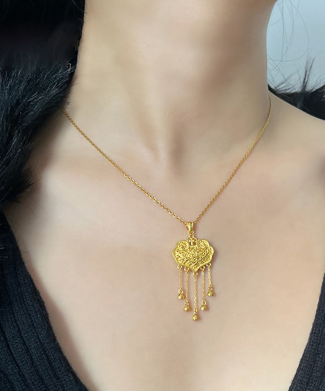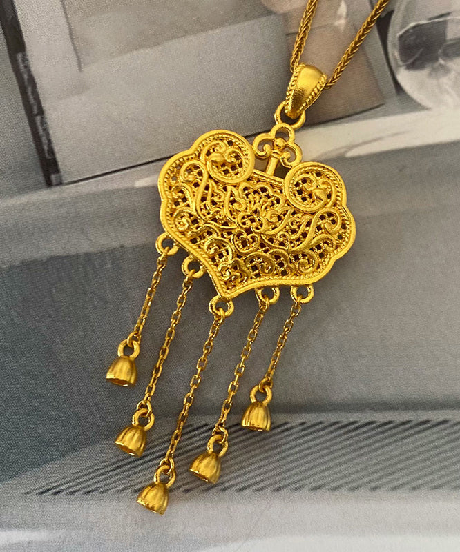 Mode Gold Sterling Silber Overgild Glück Schloss Quaste Anhänger Halskette