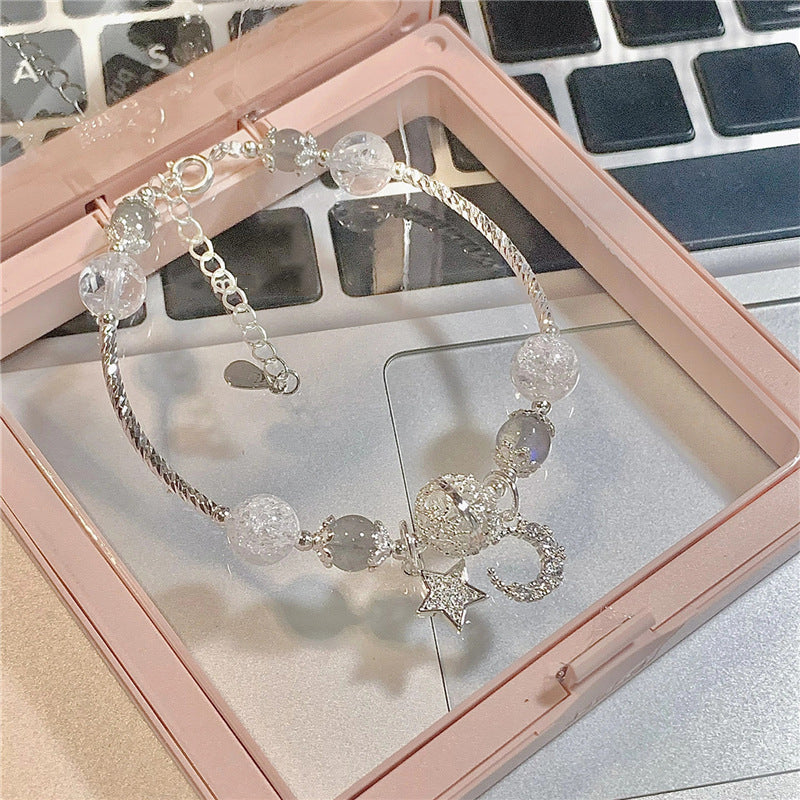 Modisches Armband mit weißen Kristallen und Zirkonia und Stern und Mond