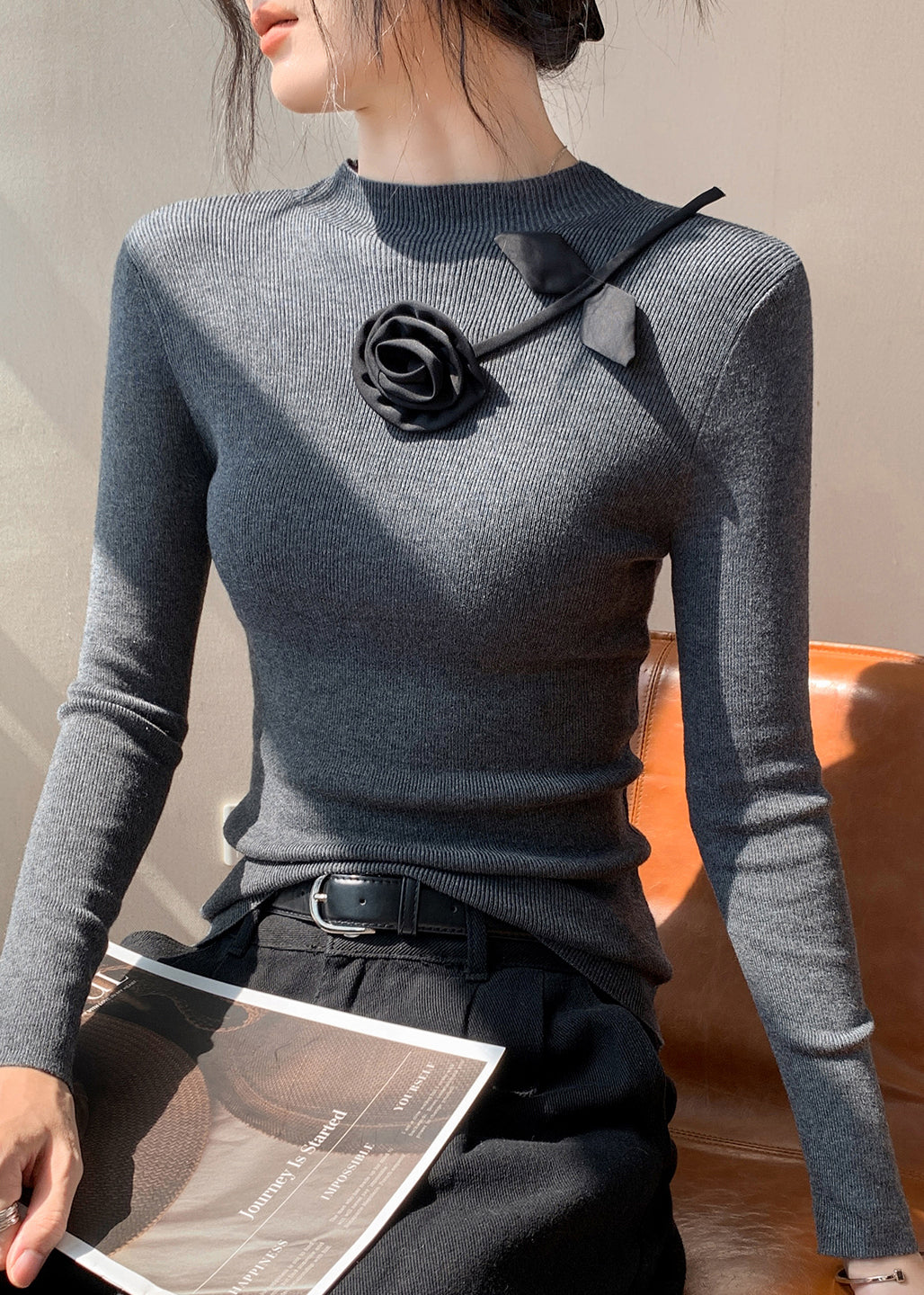Modische gelbe, figurbetonte Stricktops mit Blumenmuster für den Frühling