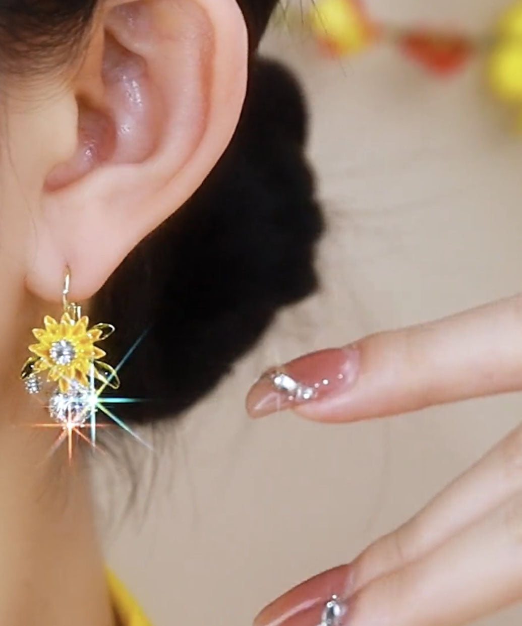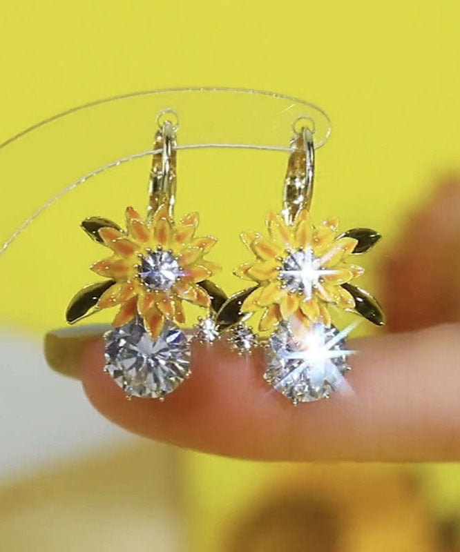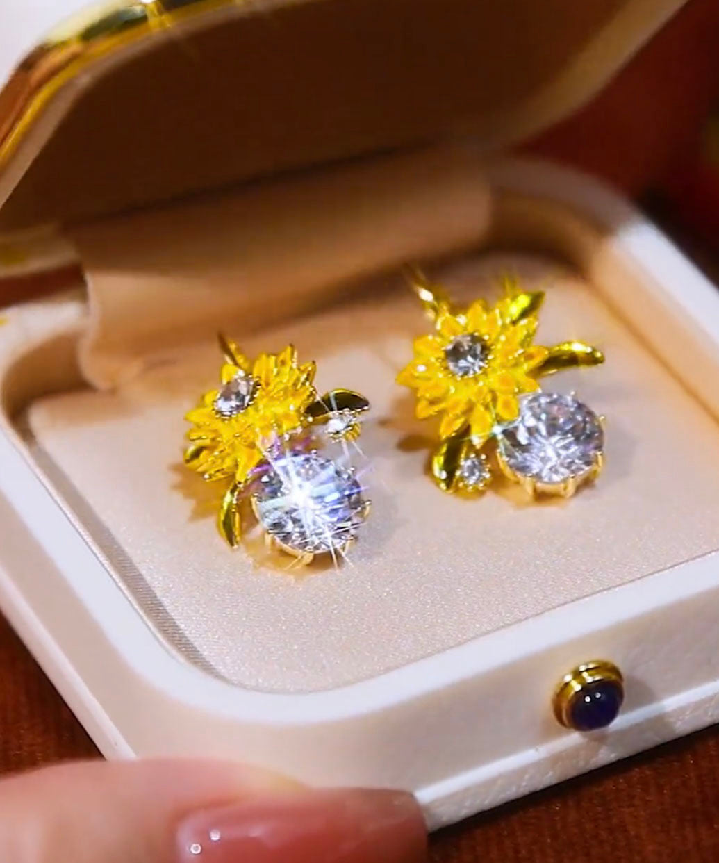 Modische Ohrringe aus Sterlingsilber mit Zirkonia und Blumenmuster in Gelb