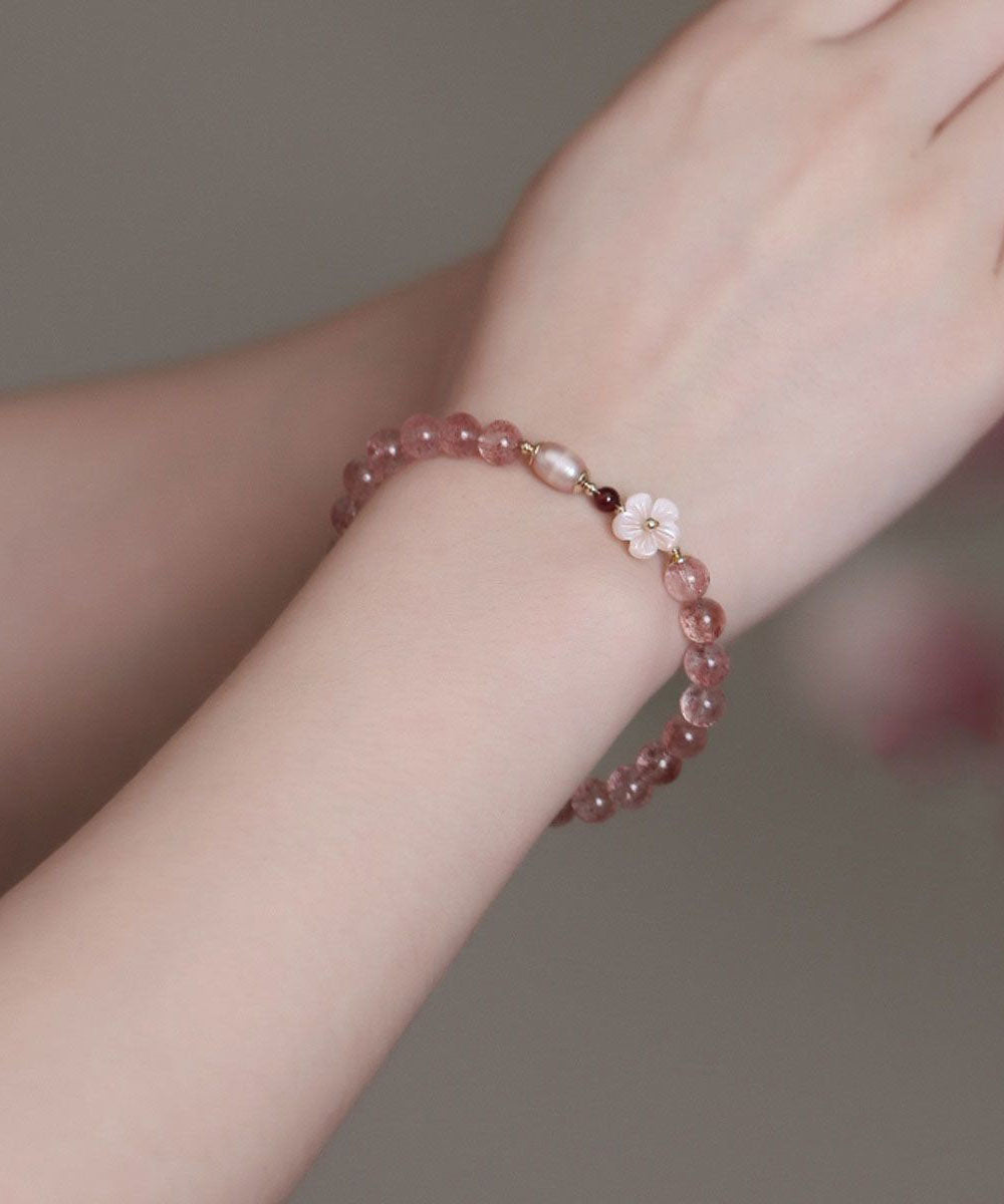 Feines rosafarbenes Kettenarmband mit Kristallen und Blumenmuster