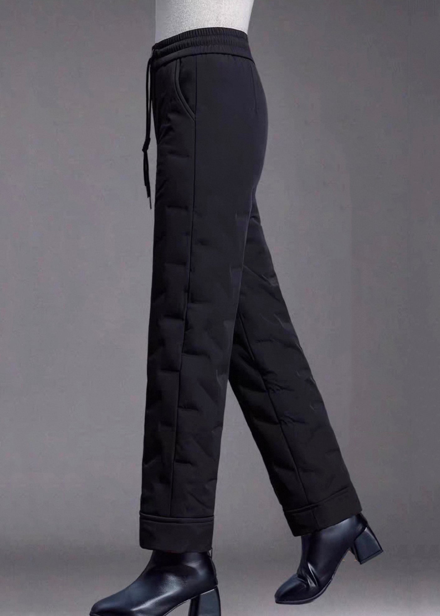 Feine rote Winterhose mit Taschen, elastischem Bund und Daunenfüllung