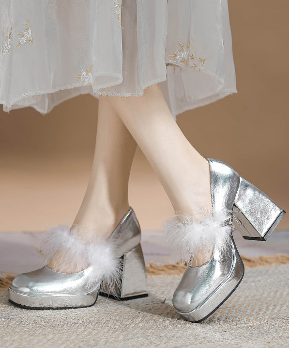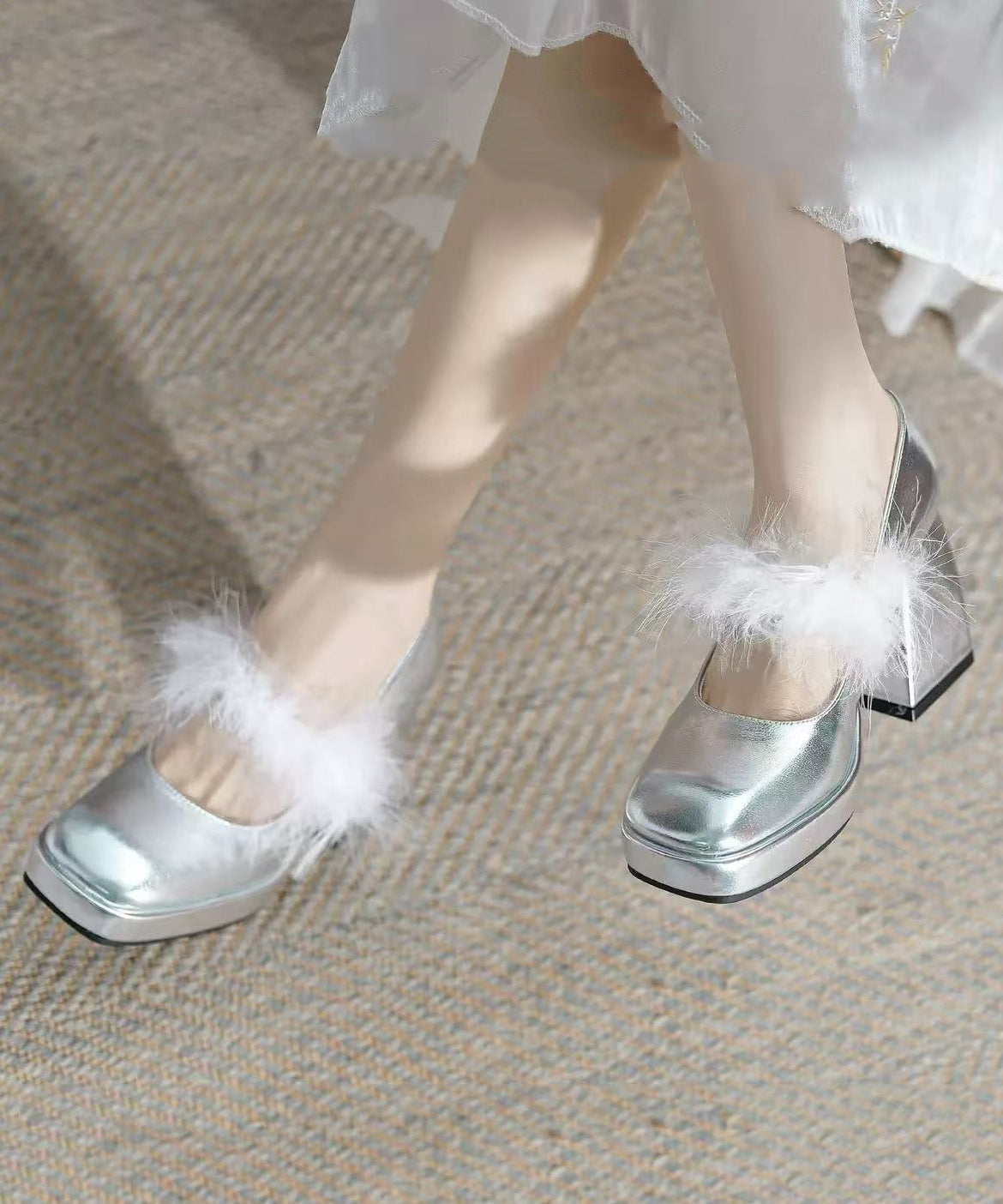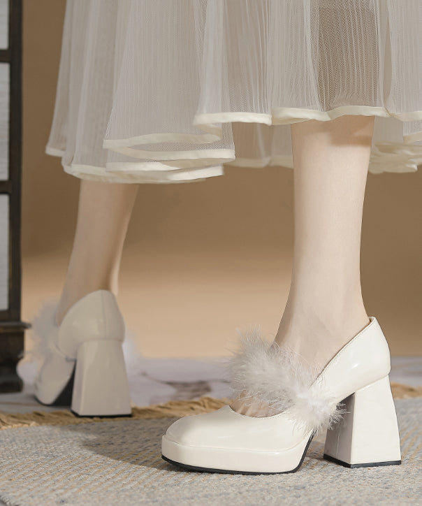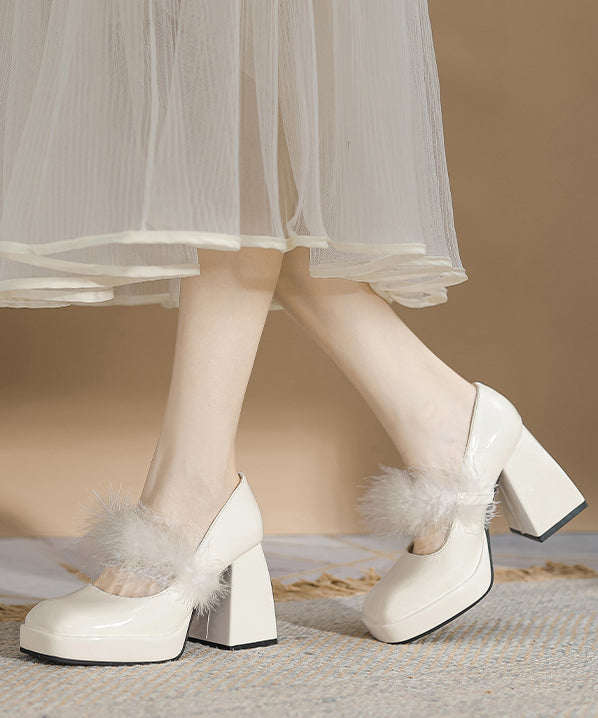 Französische Aprikose, Kunstpelz-Einsätze, klobiger Absatz, flauschiges Wollfutter