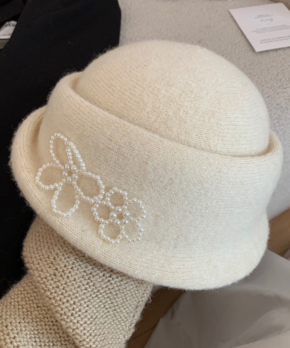Eleganter französischer Fischerhut aus schwarzem Perlenstrick