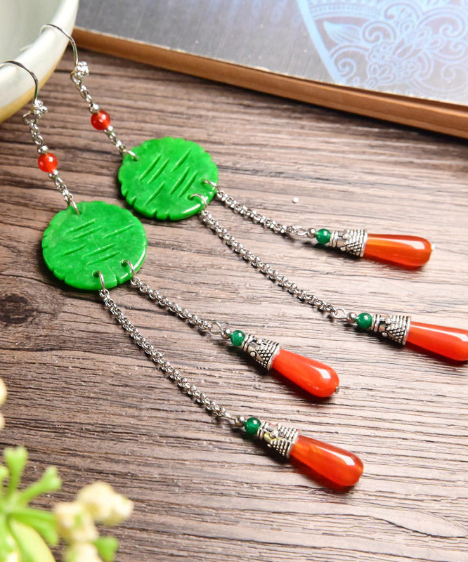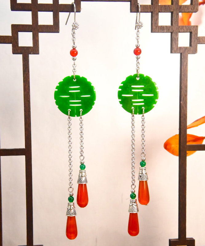 Handgefertigte Tropfenohrringe aus trockenem grünem Jade-Achat aus Sterlingsilber
