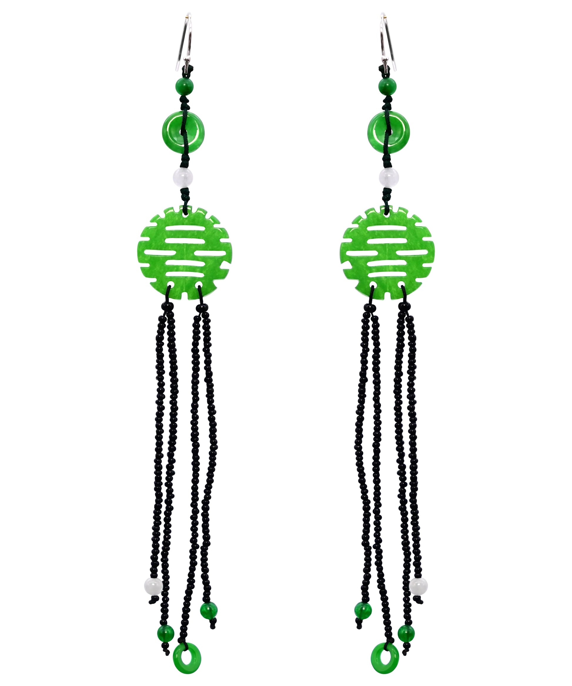 Handgemachte grüne Sterling Silber Jade Quaste Glas Bea Tropfen Ohrringe