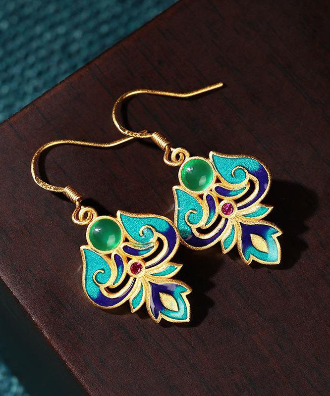 Handgefertigte grüne Sterling-Splitter-Achat-Emaille-Chalcedon-Tropfenohrringe