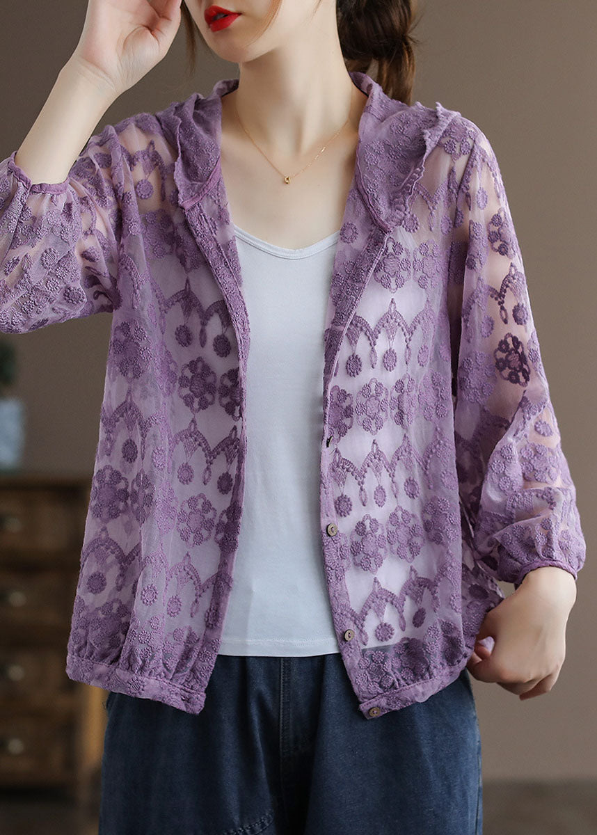 Handgemachter rot bestickter Patchwork-Kapuzenmantel aus Baumwolle mit langen Ärmeln