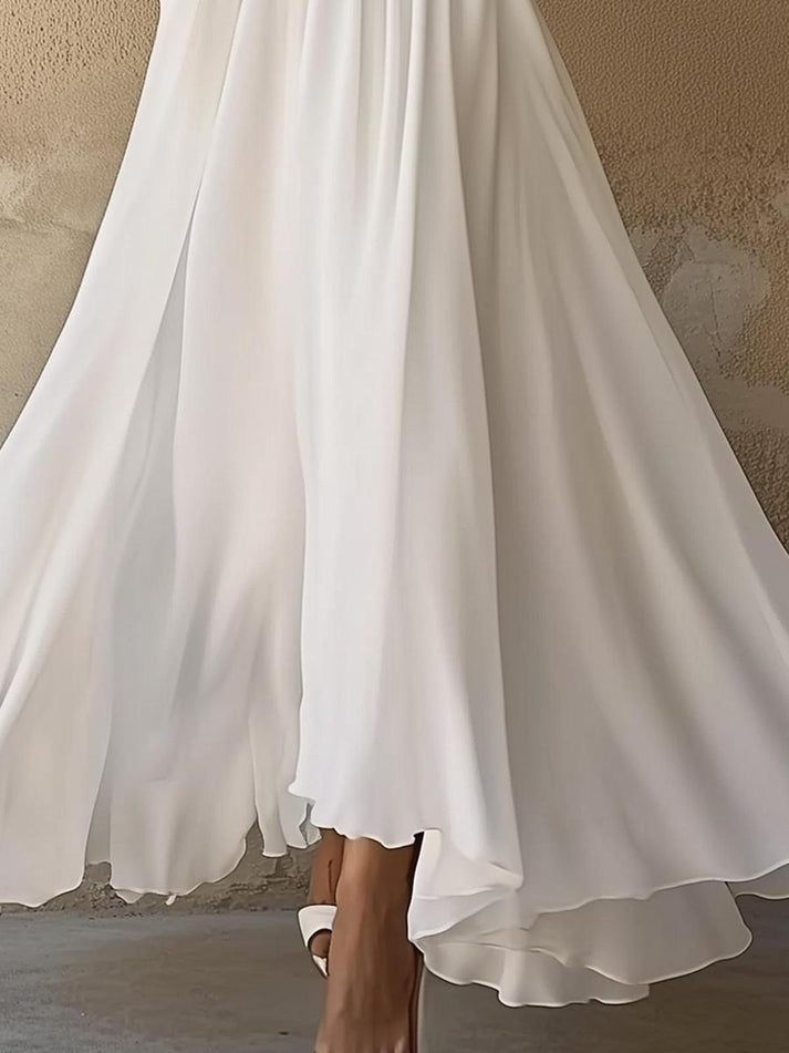 Vintage-Inspired White V-Neck Maxi Dress