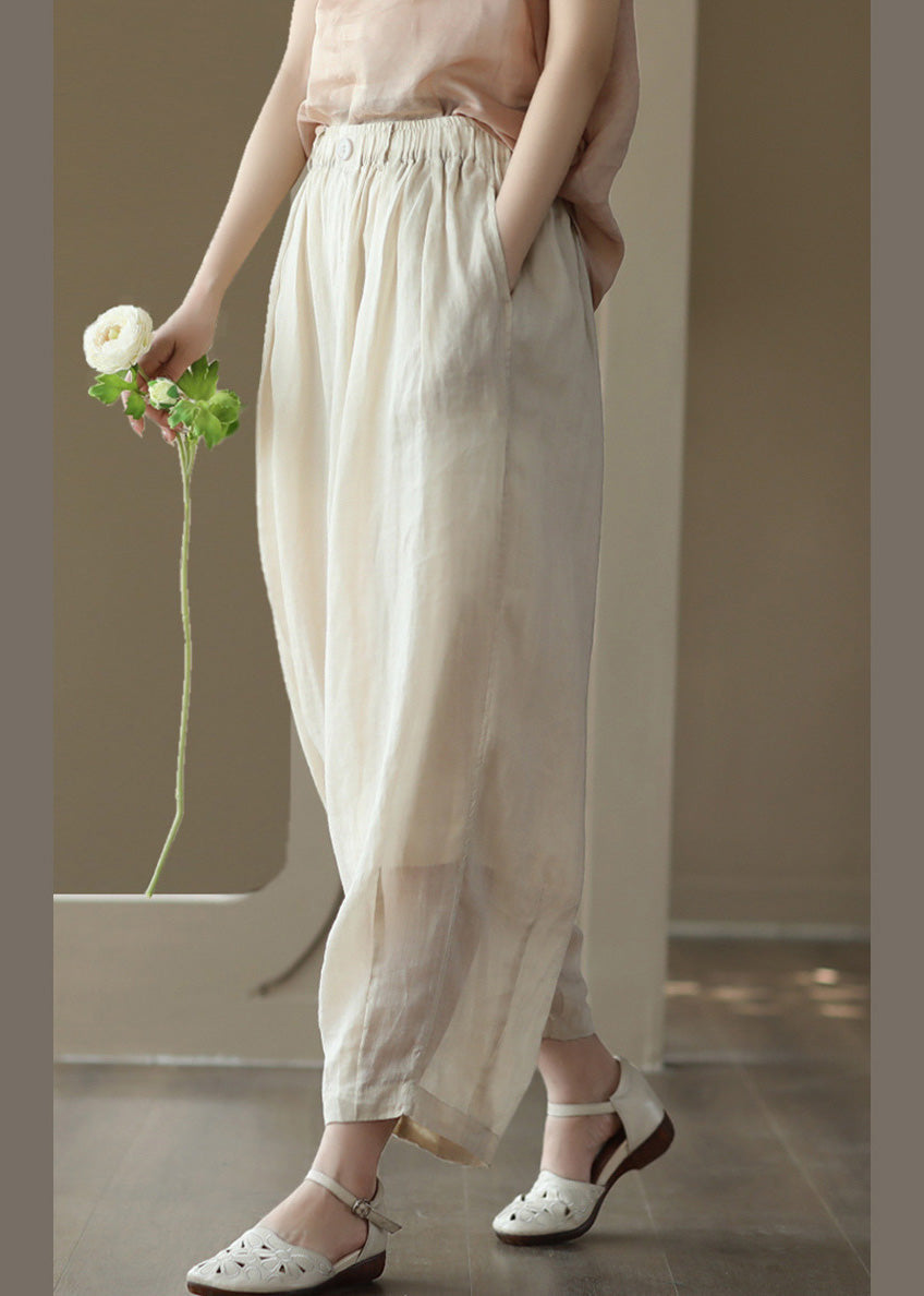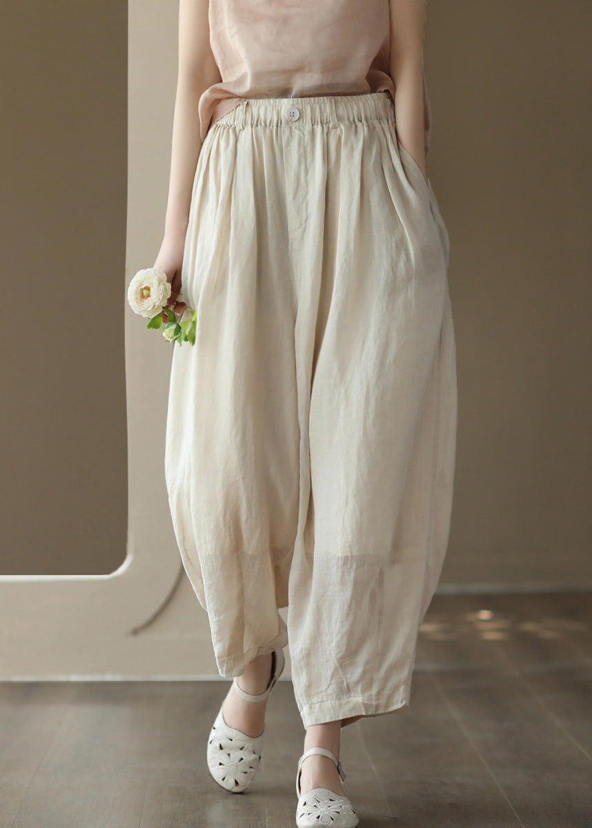 Gemütliche Ramie-Laternenhose mit farbigen Taschen aus Leinen