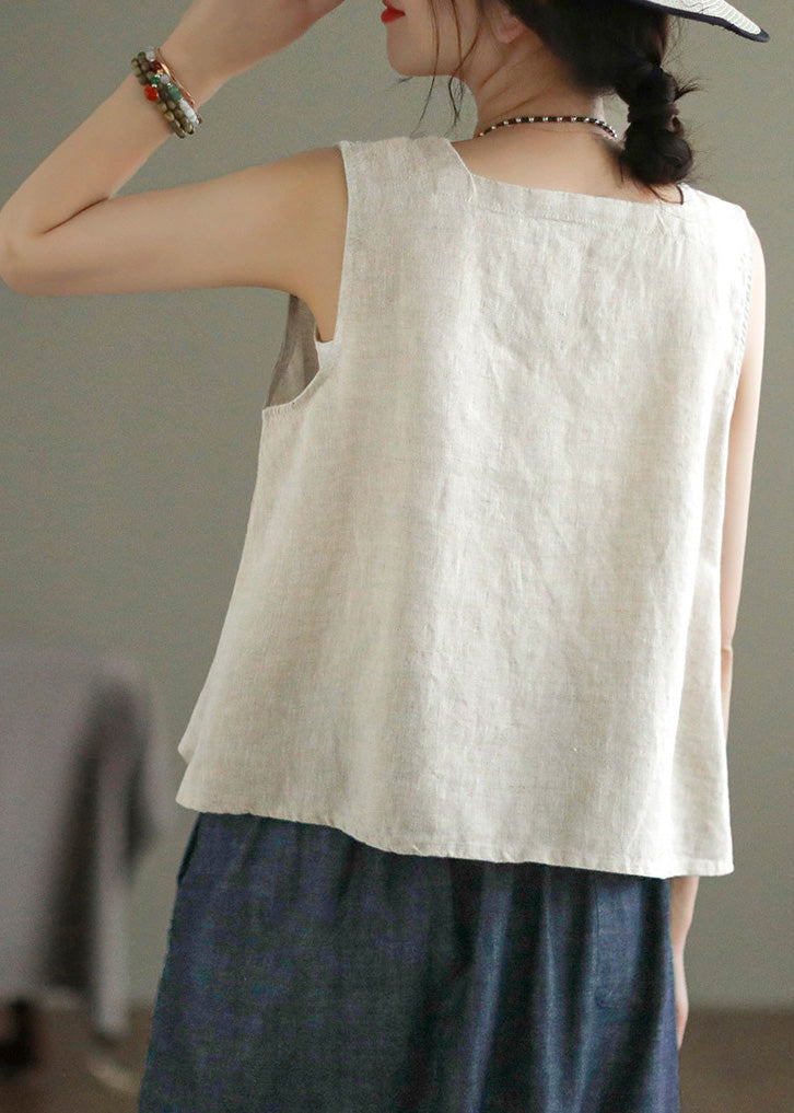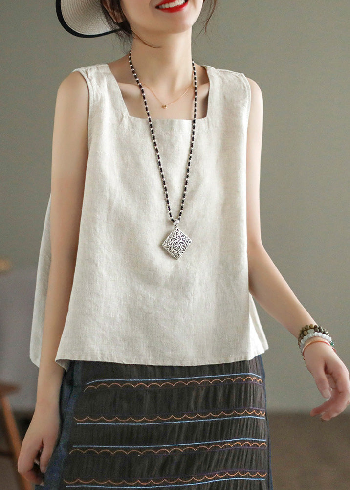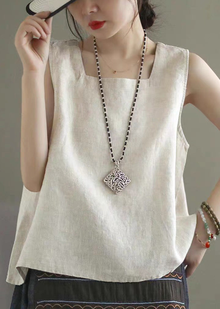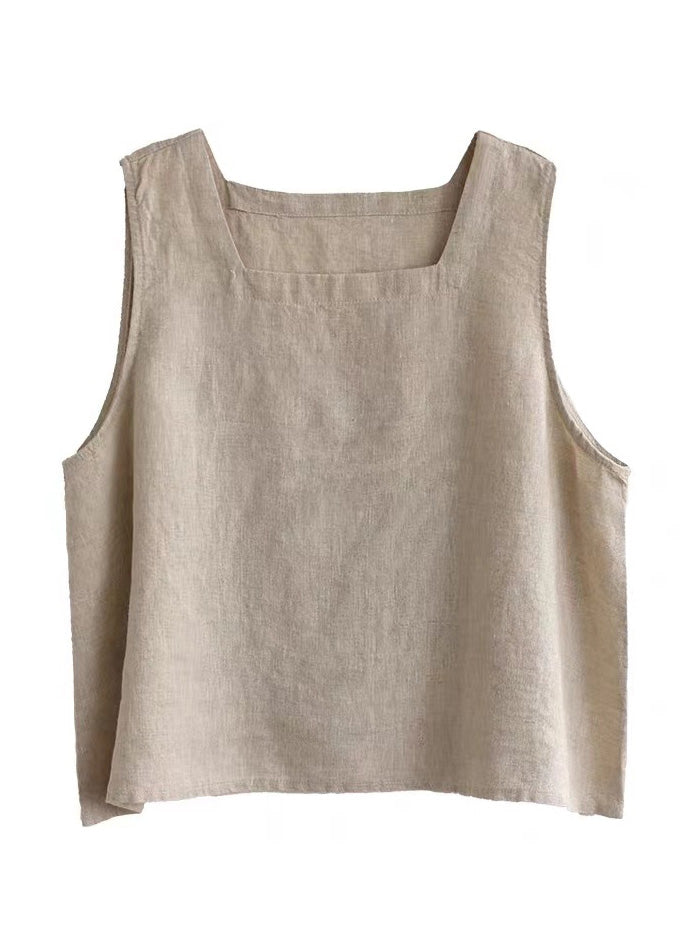 Lose Leinenfarbe Quadratkragen Einfarbige Leinenoberteile Sommer