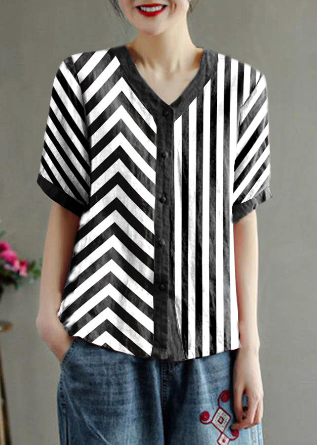 Lockeres rosa Sommer-Leinenhemd mit V-Ausschnitt und Blumenstickerei