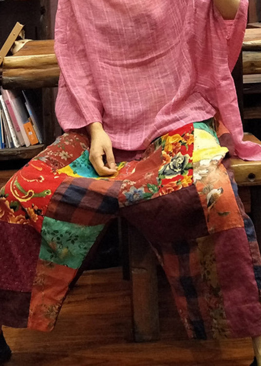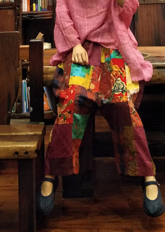 Sommerhose aus Leinen mit weitem Bein und lockerem Druck und elastischer Taille