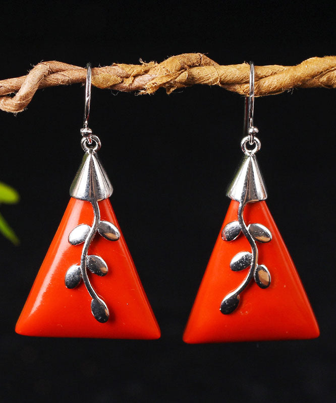 Lose rote Sterling Silber Zinnober Tropfen Ohrringe