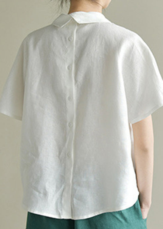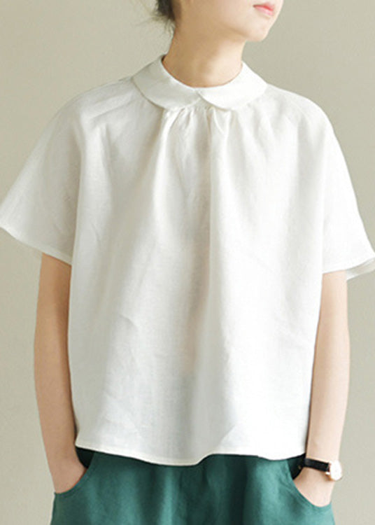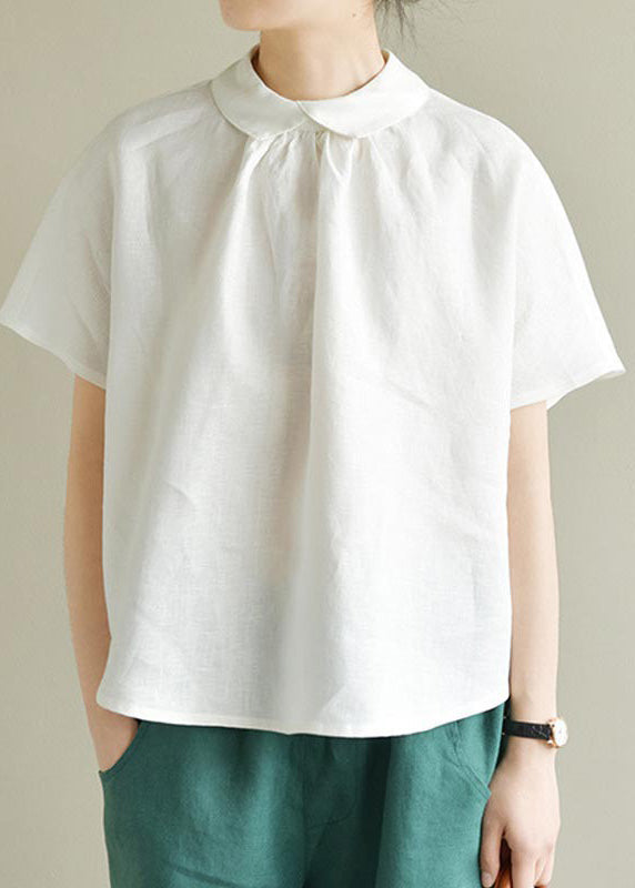 Lockeres weißes Peter-Pan-Kragen-Oberteil aus festem Leinen für den Sommer