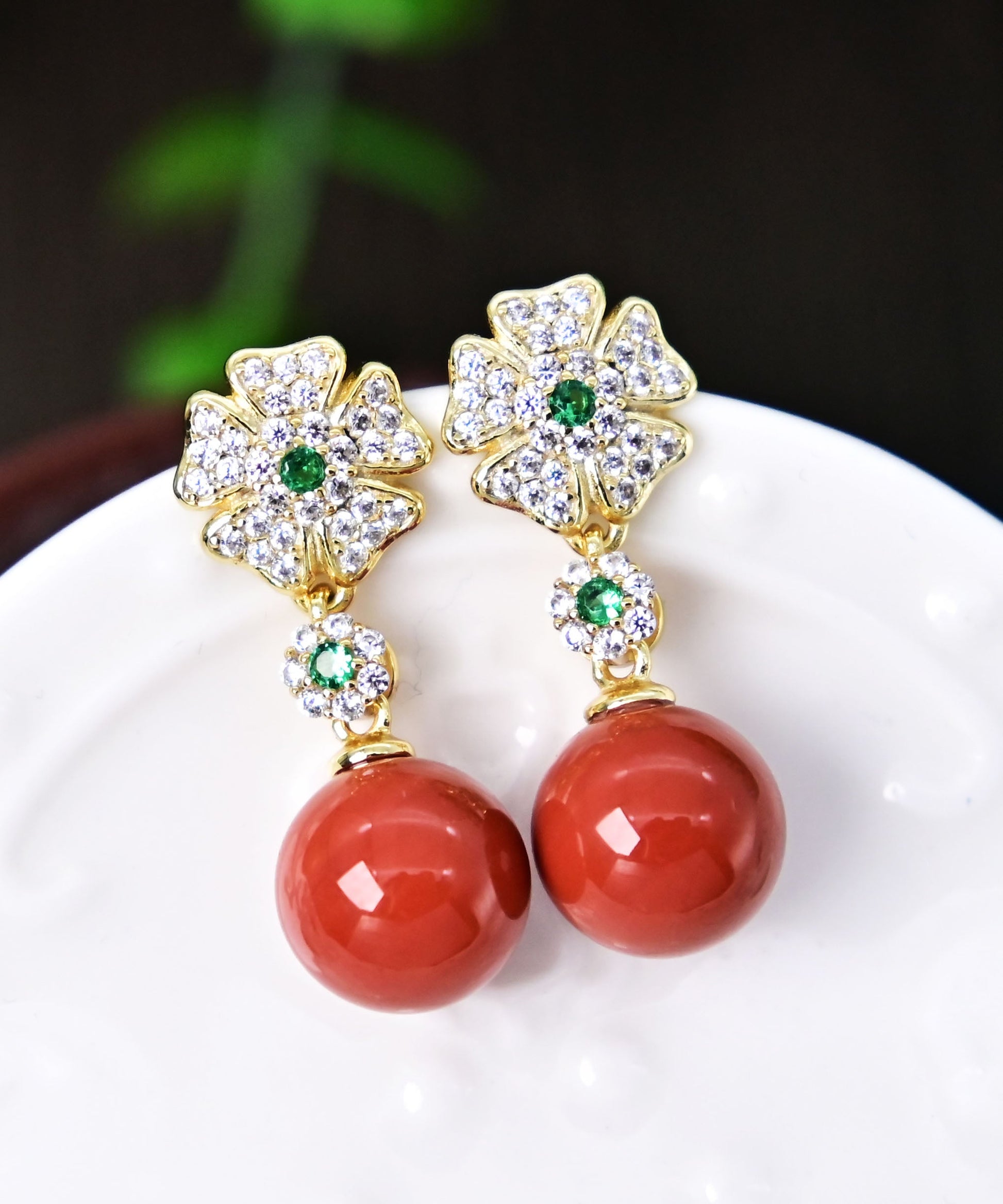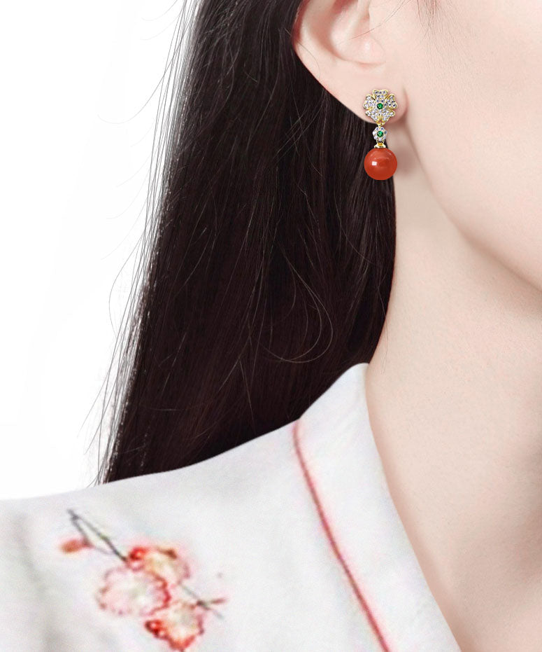 Hergestellt aus feinem Sterlingsilber, vergoldet mit Achat und Zirkonia-Blumenmuster.