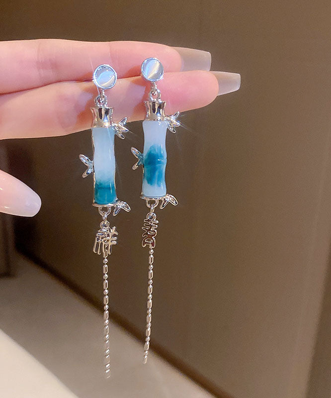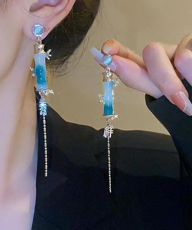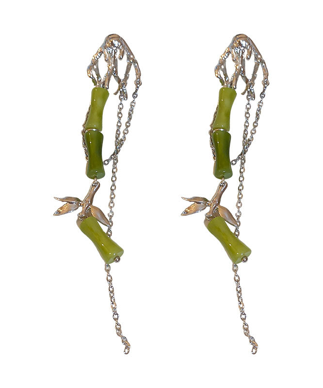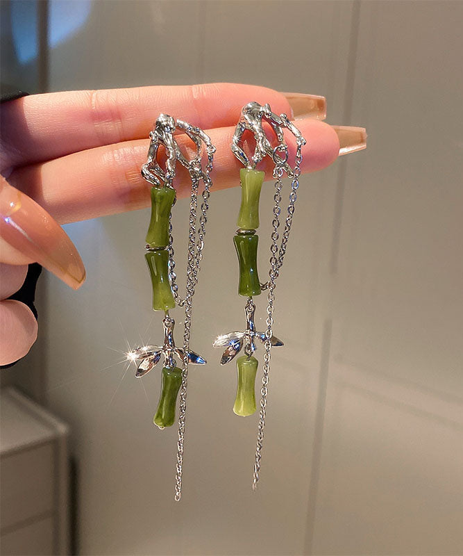 Moderne grüne Ohrringe mit Quaste aus Acryl und Bambus