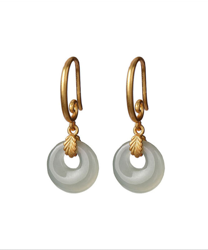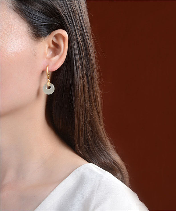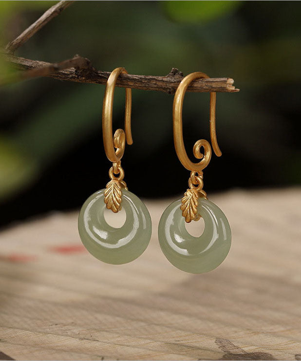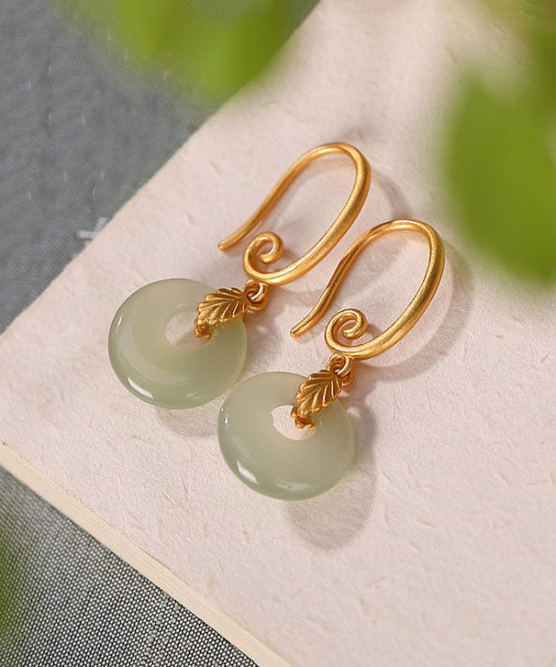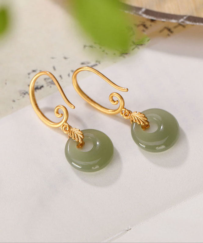 Moderne grüne Sterling Silber Overgild Jade Ping Buckle Drop Ohrringe