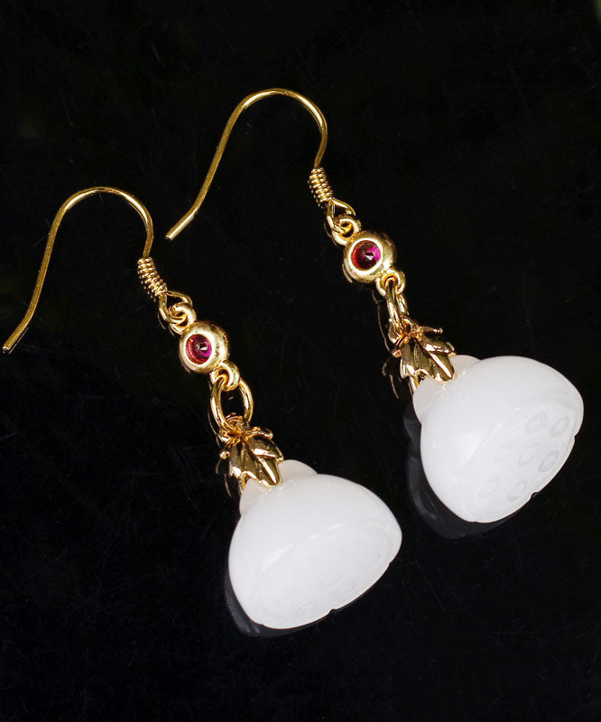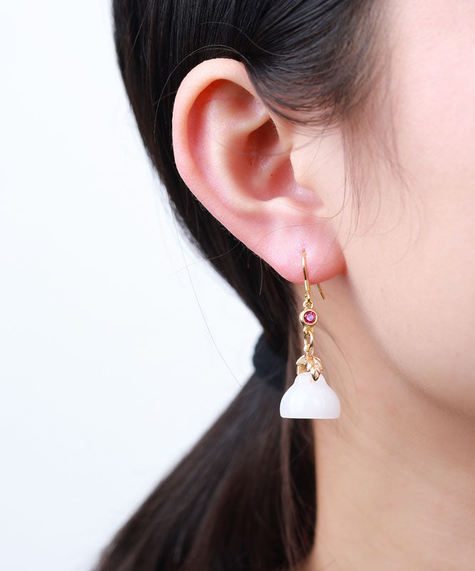 Moderne weiße Tropfenohrringe aus Sterlingsilber mit Jadekristallen
