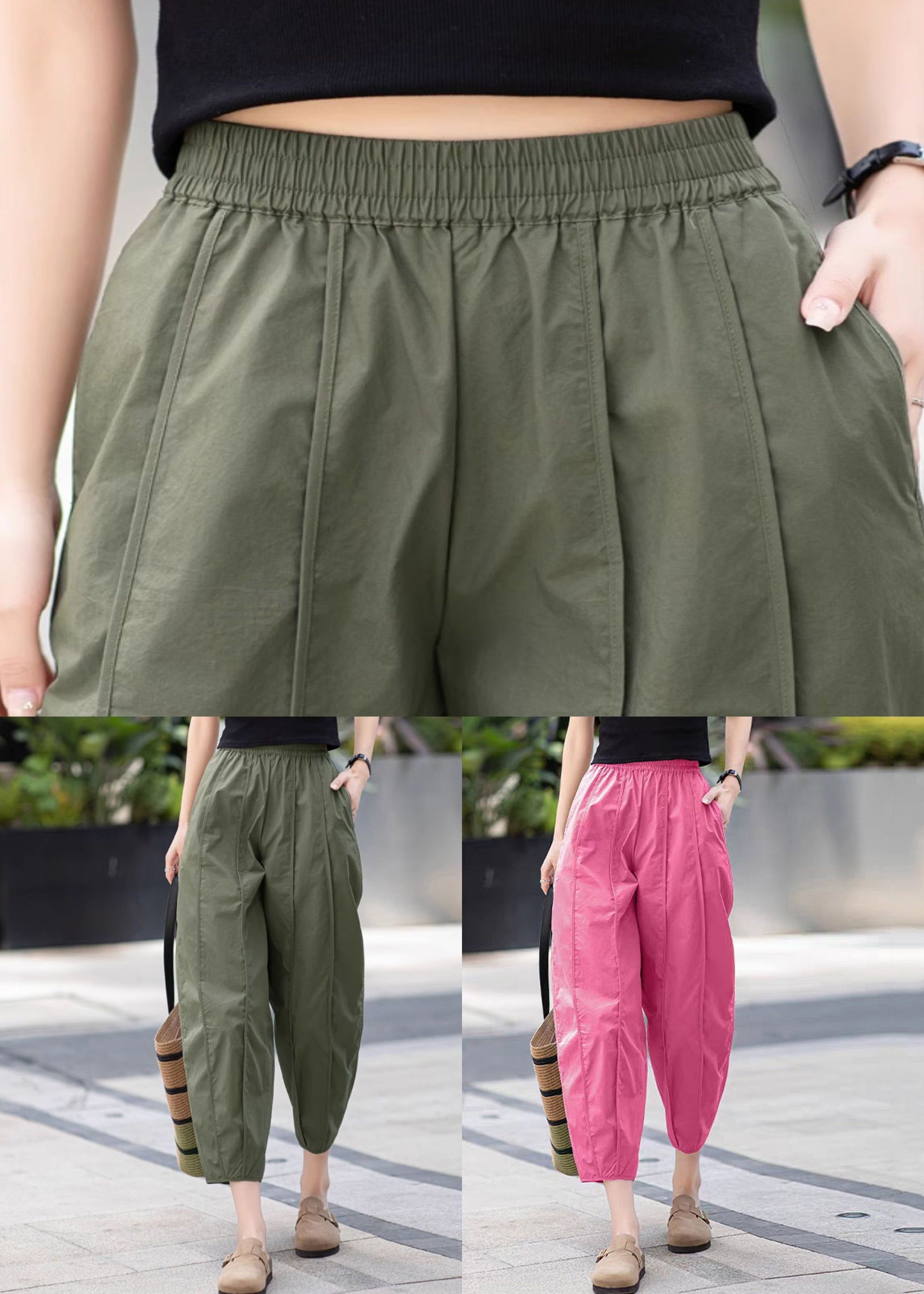 Neue olivgrüne, knöchellange Baumwollhose mit Falten in Taschen für den Sommer