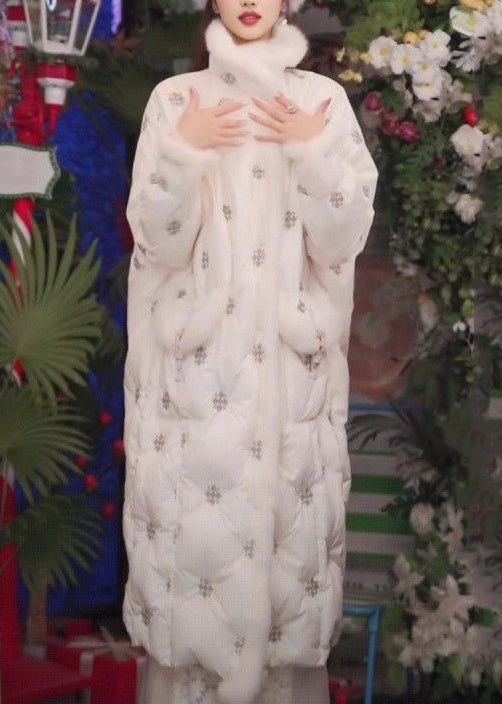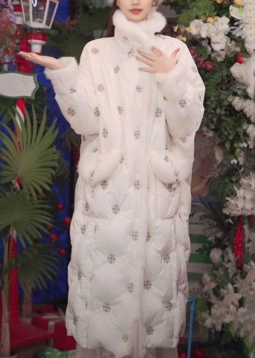 Orangefarbene Parkas mit Taschen, Kaninchenfell-Patchwork, Baumwollfüllung und Stickerei