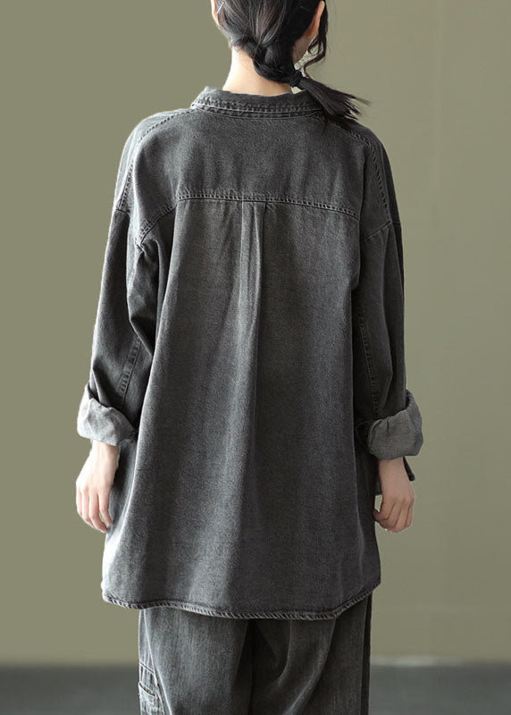 Bio-schwarz Peter Pan Kragen Taschen Patchwork Denim Mäntel Langarm