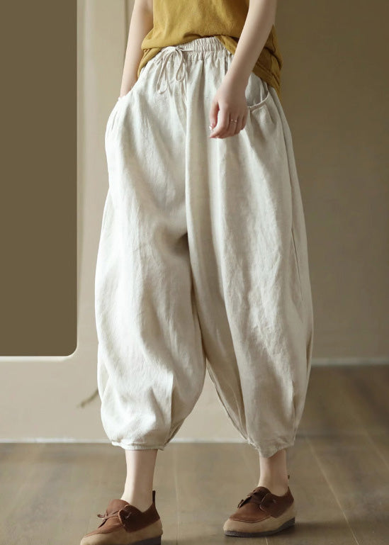 Bio-Leinen-Crop-Hose in Orange mit elastischer Taille