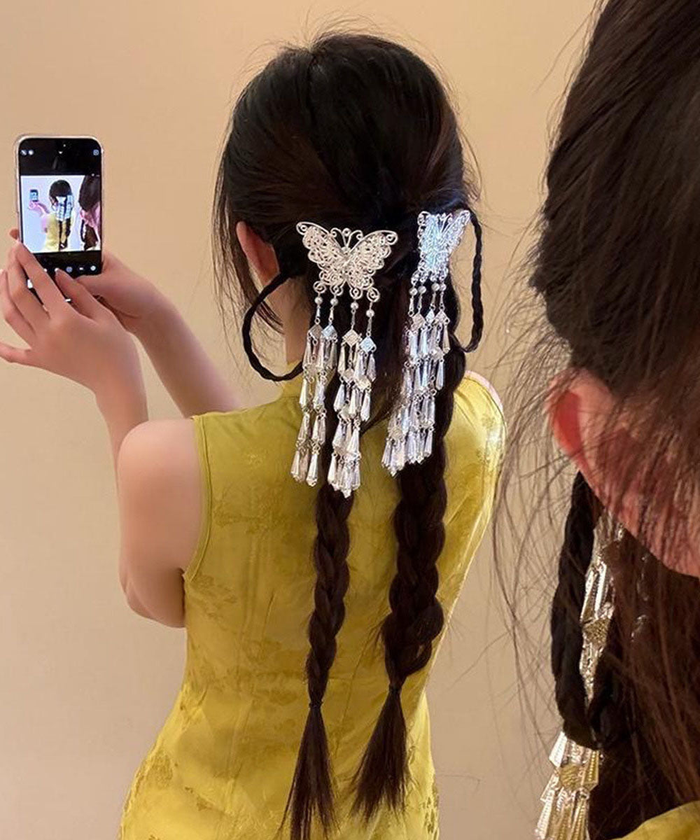 Haarnadel mit originellem Design: Seide, Sterlingsilber, Perle, Schmetterling, Quaste, Haarnadel