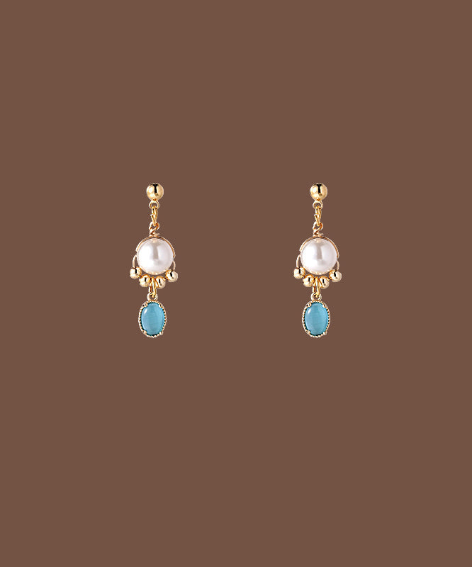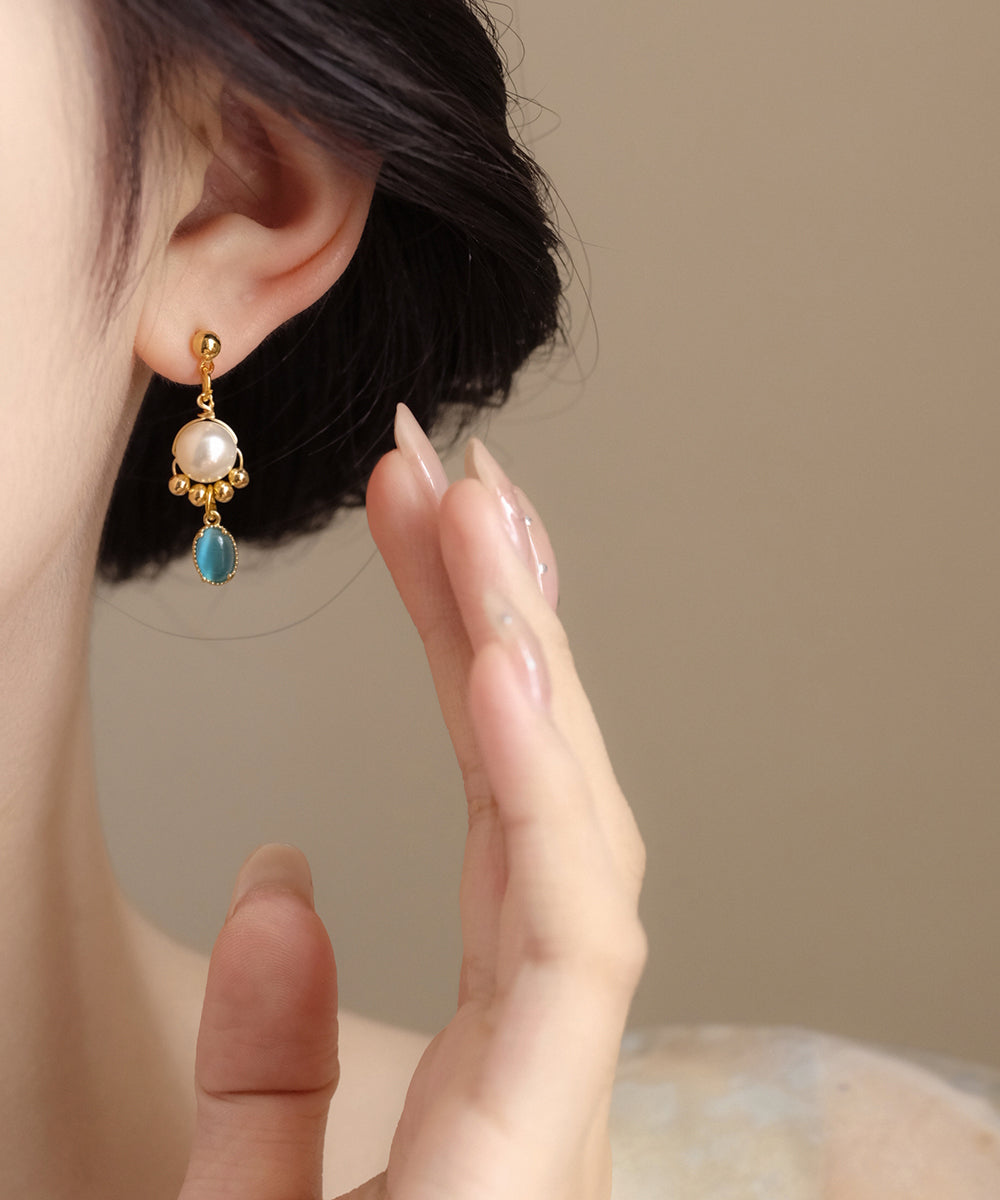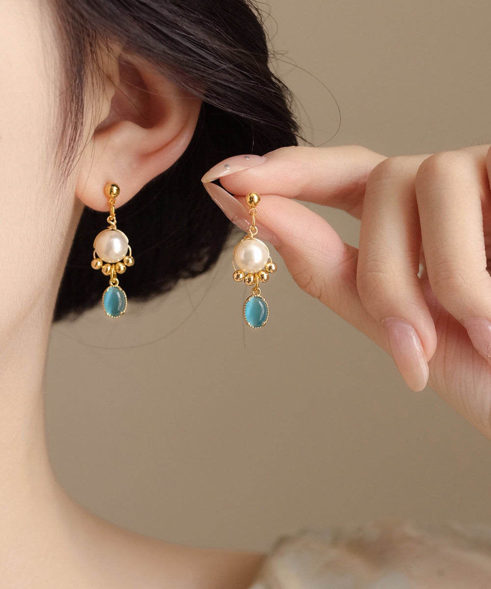 Ohrhänger aus originaler Gold-Kupfer-Legierung mit Katzenaugenstein, Perle und Quaste