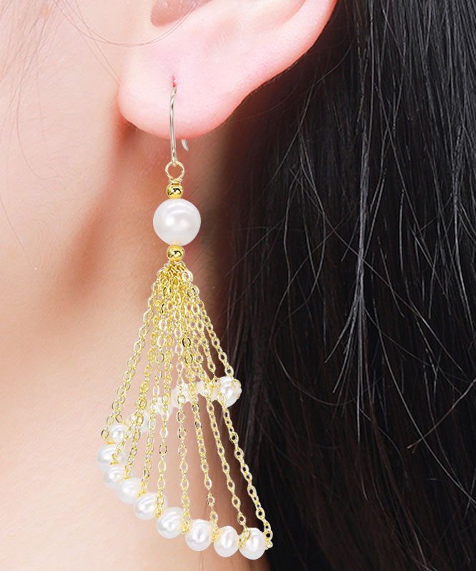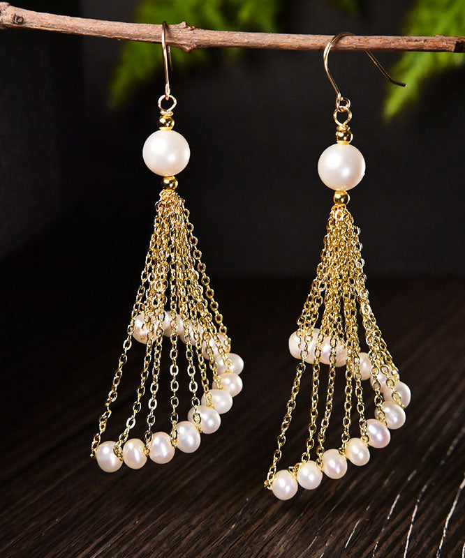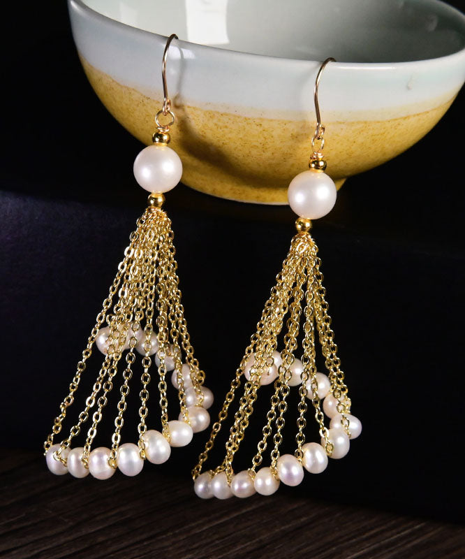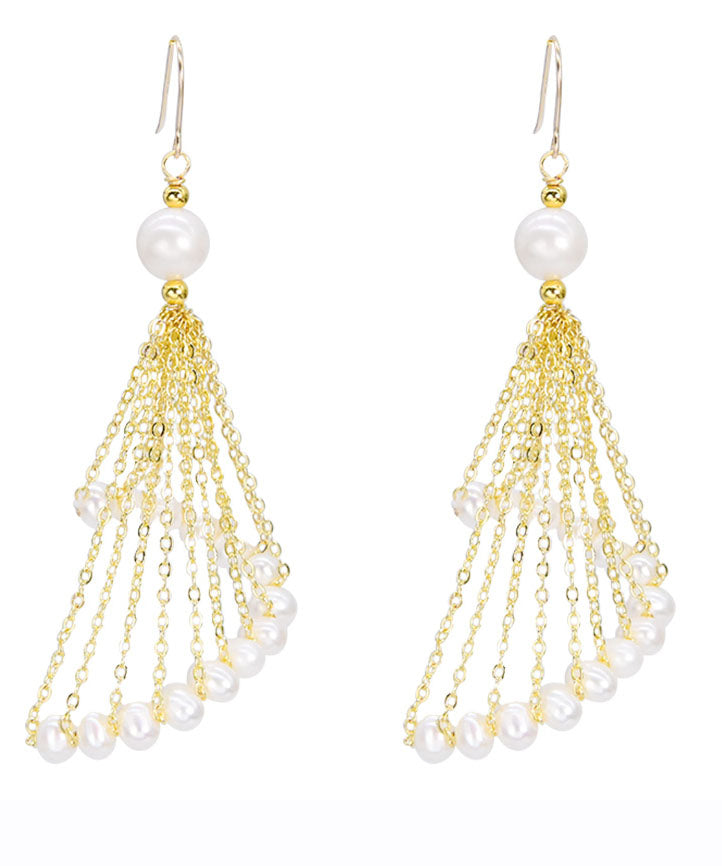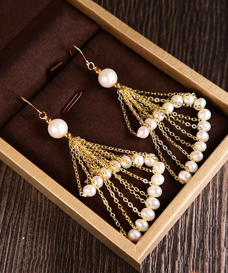 Übergroße Tropfenohrringe aus 14 Karat Gold mit Perlenquaste