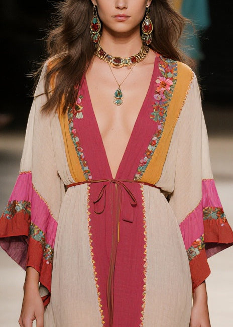 Plus Size Apricot Tie Waist Print Cotton Robe Dresses Summer