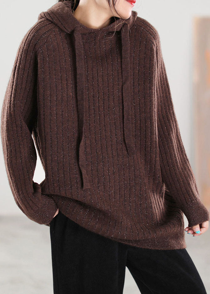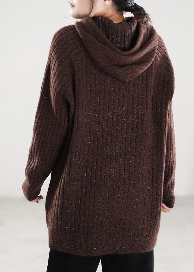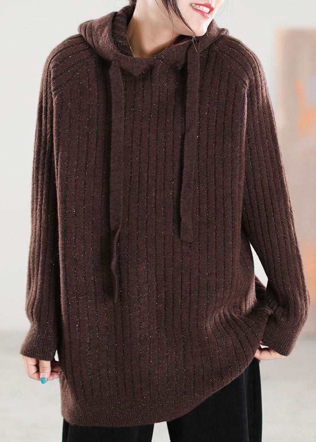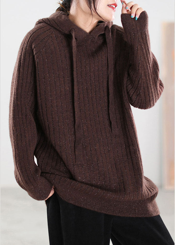 Plus Size Schokolade Kapuzen Kordelzug Strick Tops Frühling