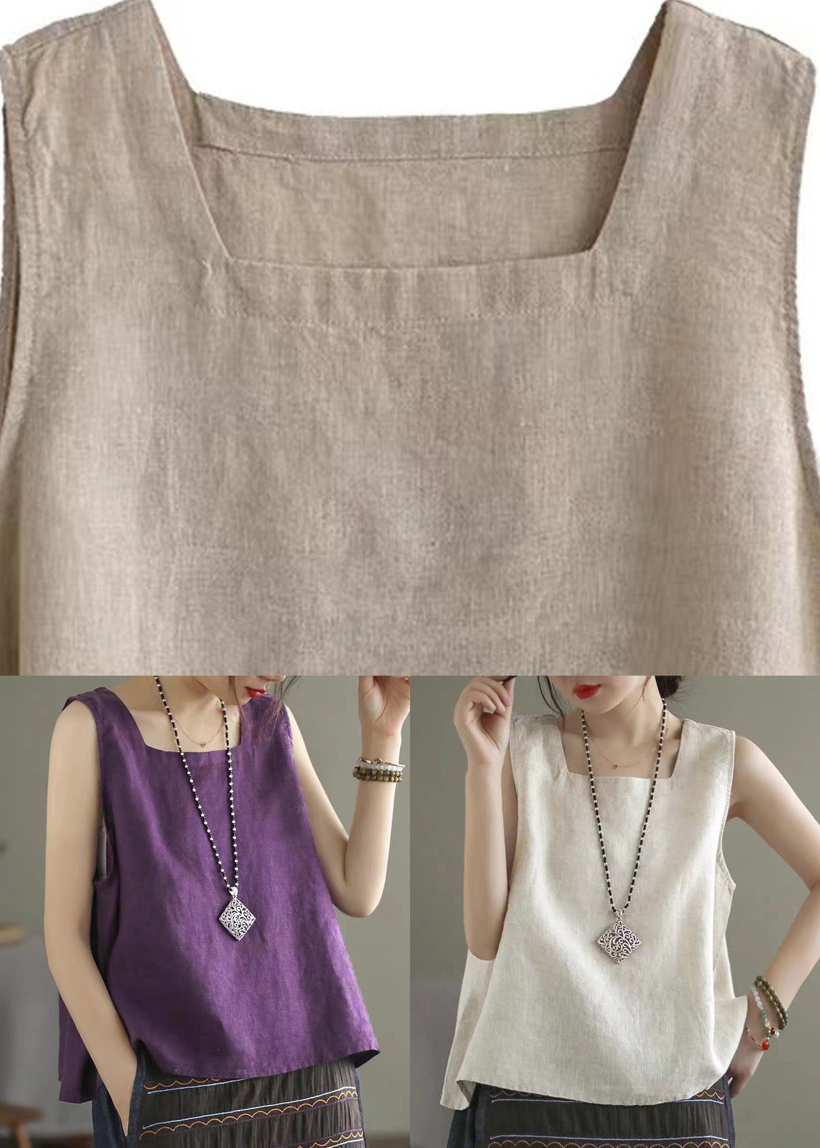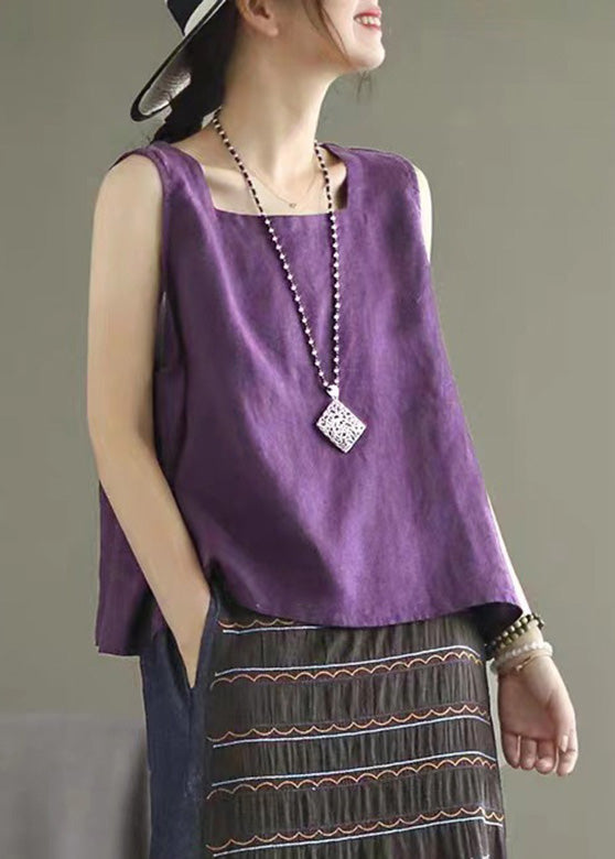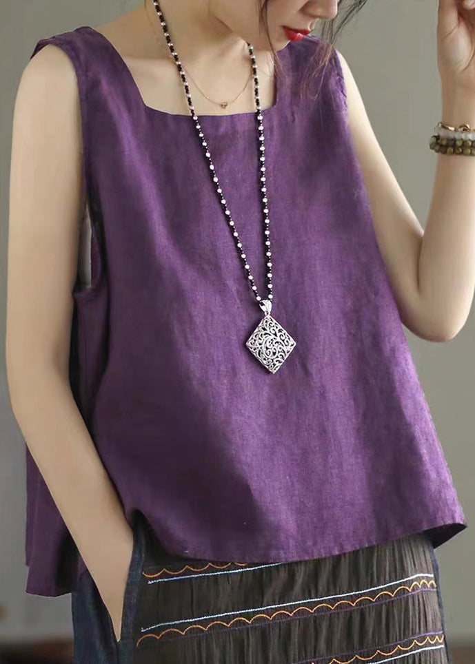 Lila gemütliche, ärmellose Weste aus festem Leinen
