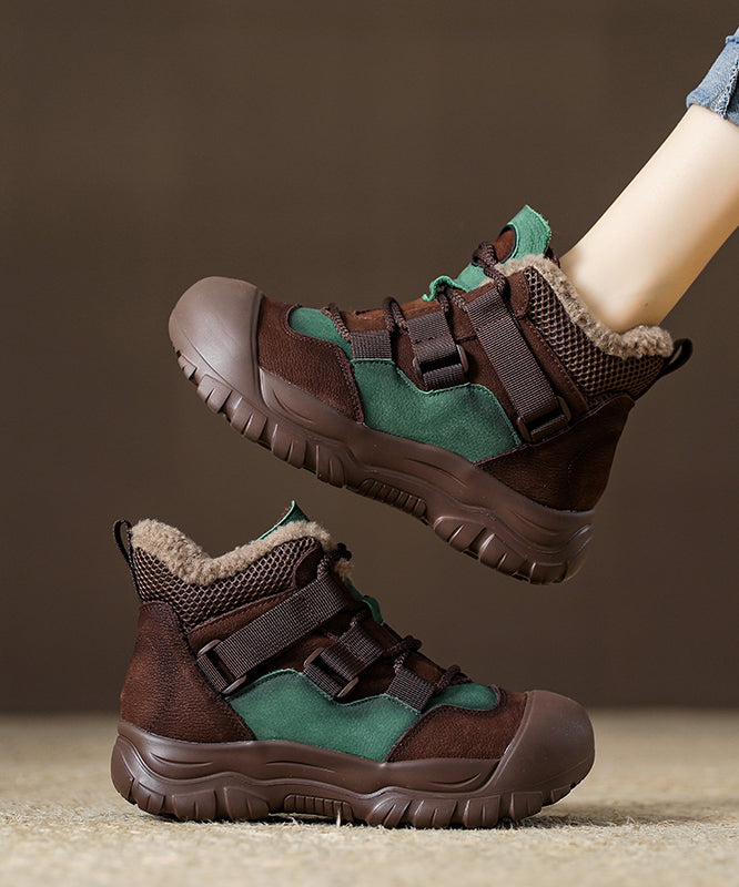Rote Rindslederstiefel mit flauschigem Wollfutter und Schnürung