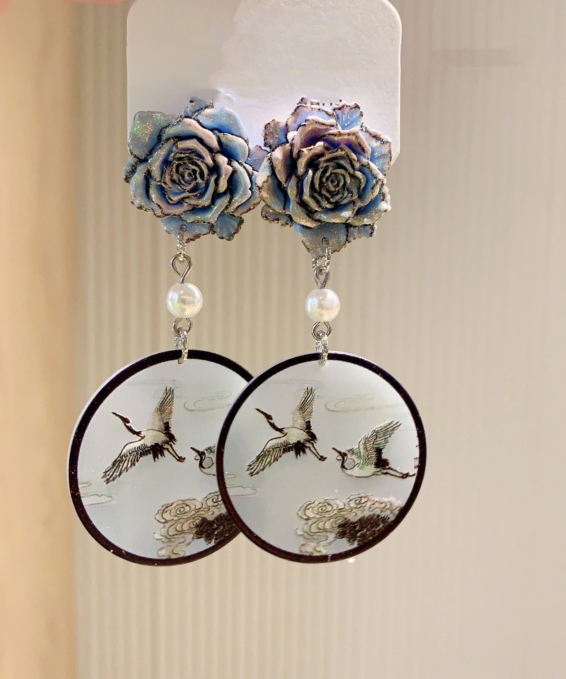 Retro Schwarze Acrylperlen-Ohrhänger mit Blumenmuster
