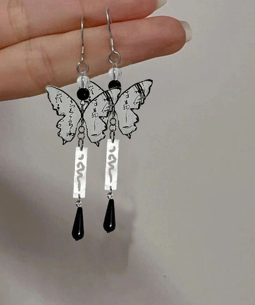 Retro Tinte und Waschen Schmetterling Quaste Wassertropfen Tropfen Ohrringe