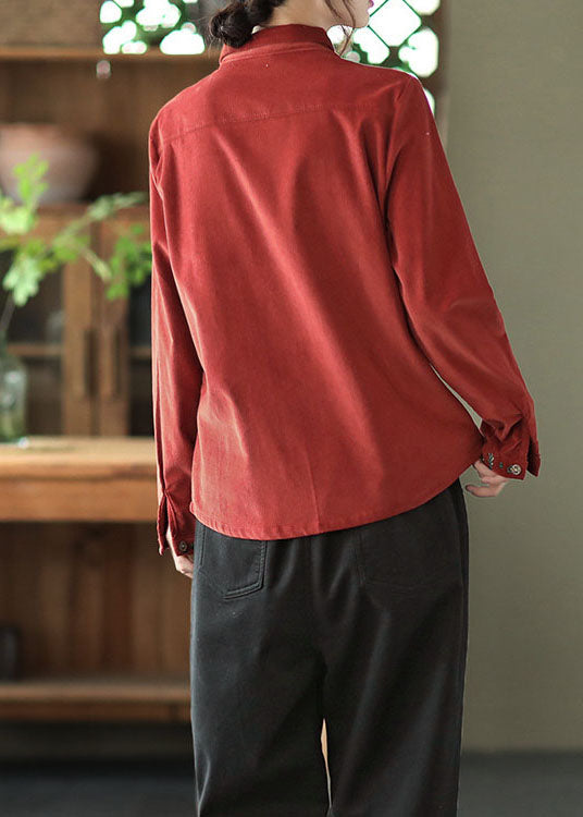 Retro Rot Bestickt Patchwork Cord Hemd Tops Frühling