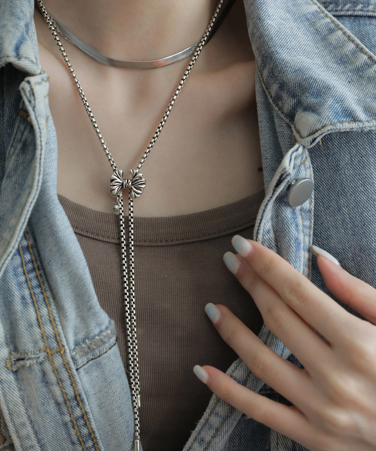 Retro-Halskette mit Quastenanhänger aus Sterlingsilber mit Schleife
