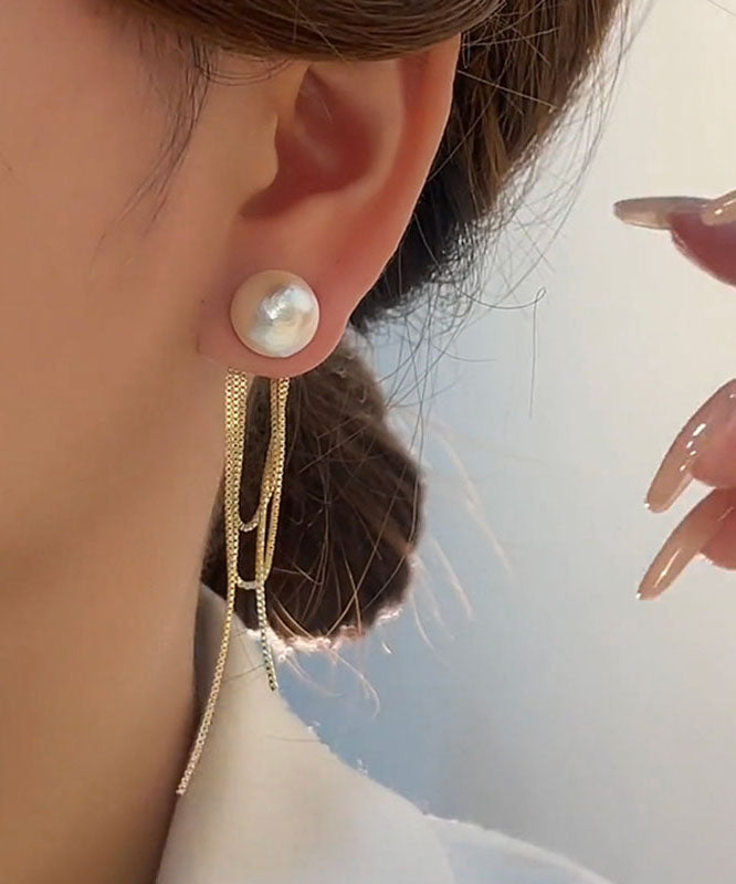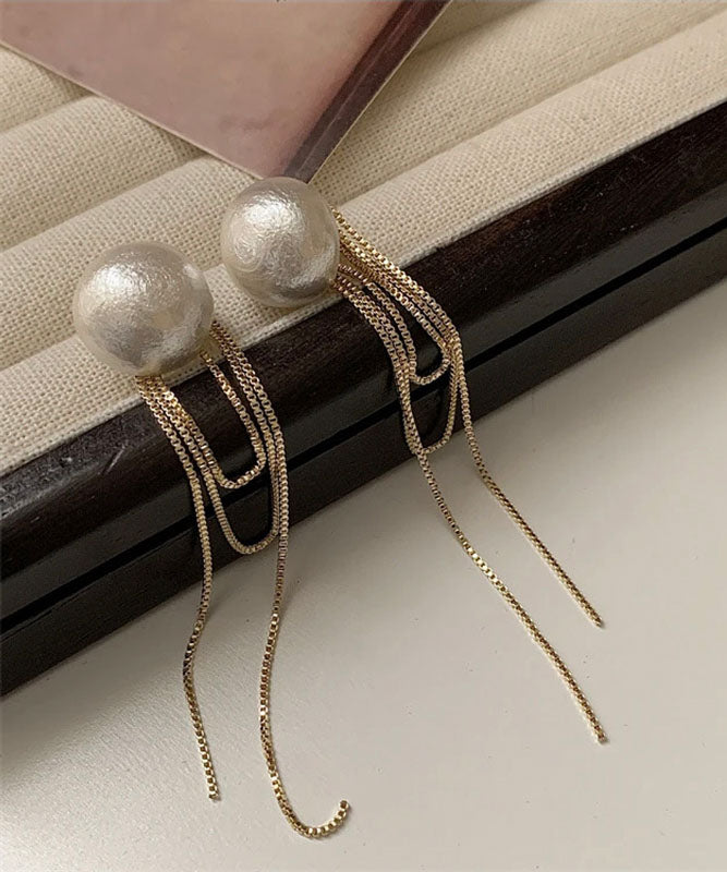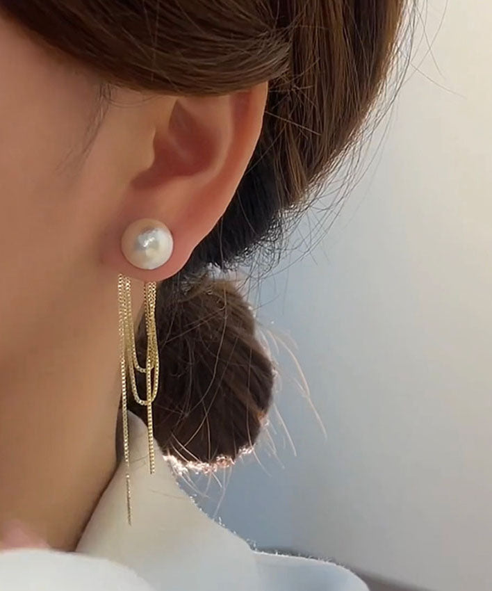 Schlichte Ohrringe mit Perlenquaste in Gold und Kupfer