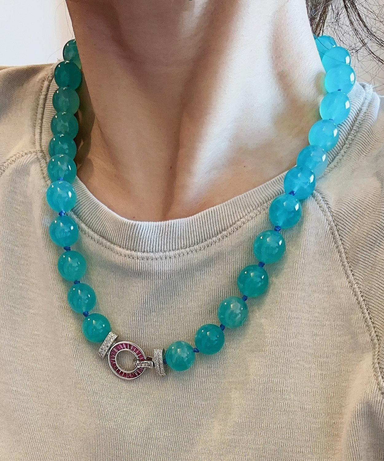 Schlichte Halskette mit roten Kristallperlen