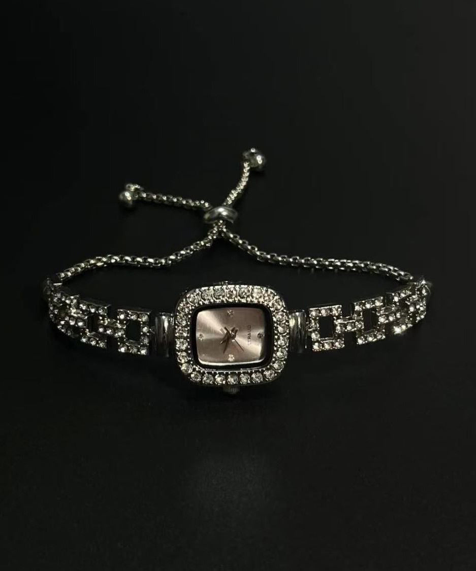 Simple Silk Edelstahl Zirkon Zuckerwürfel-Kettenuhren