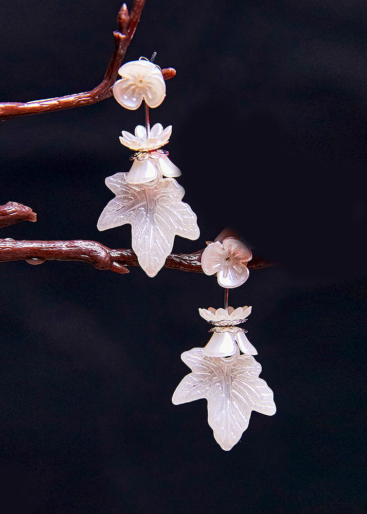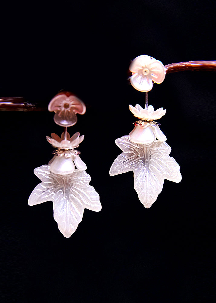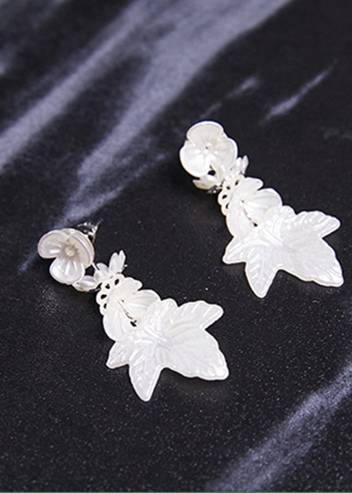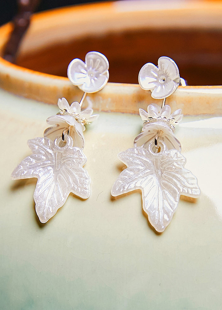 Schlichte Tropfenohrringe aus Acryl mit weißen Blättern