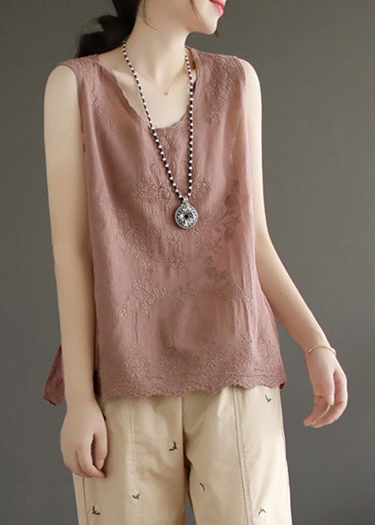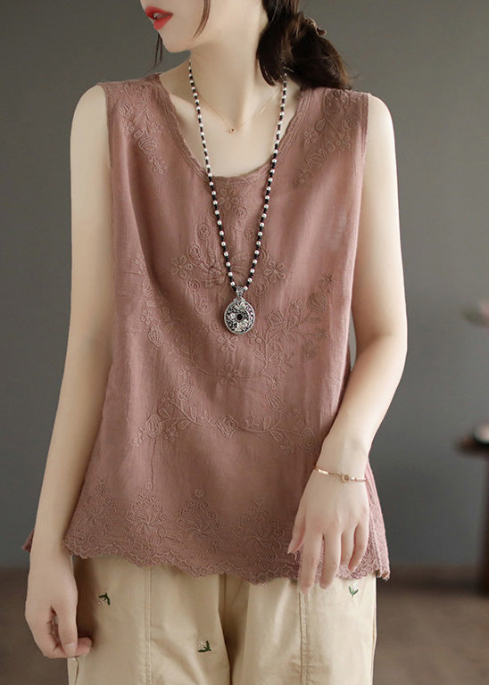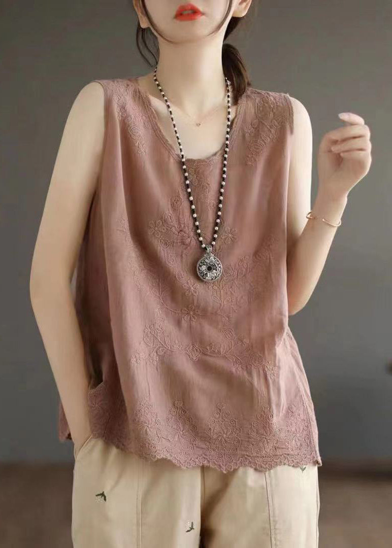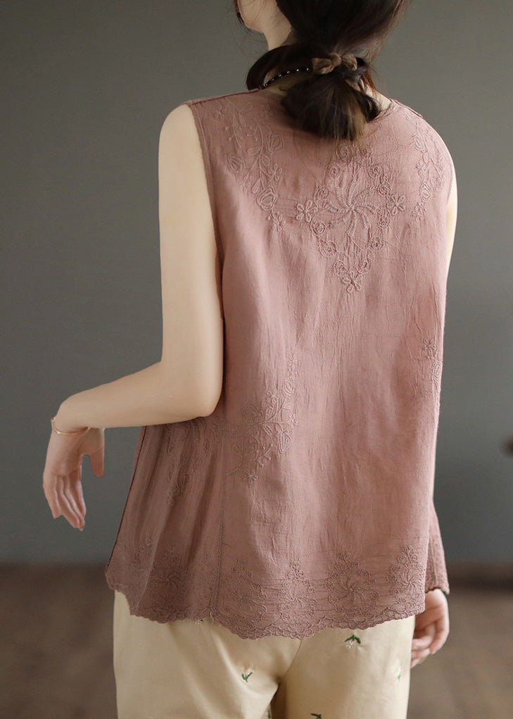 Ärmellose Weste aus einfarbiger Baumwolle mit Stickerei in Hautrosa