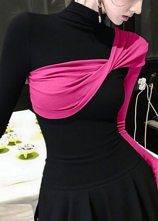 Schmal geschnittene lila T-Shirts aus Baumwolle mit asymmetrischem Patchwork-Muster für den Frühling